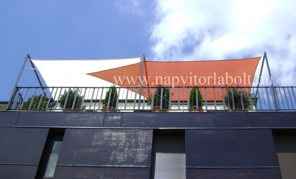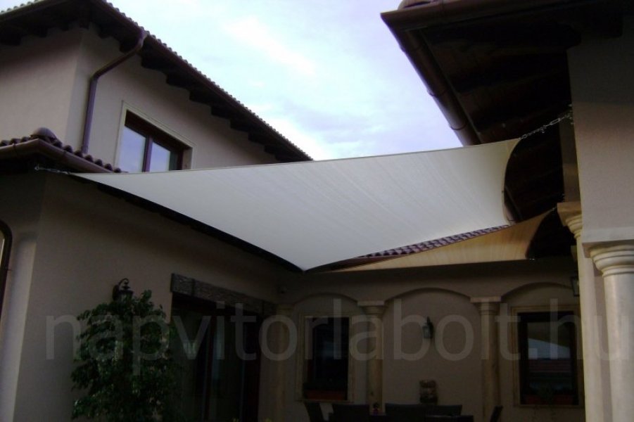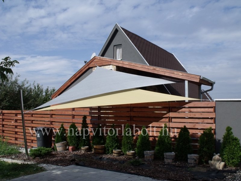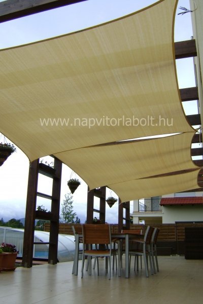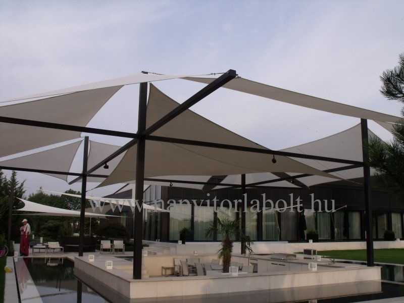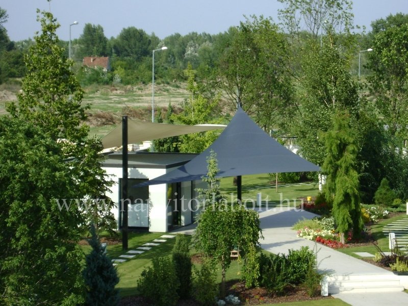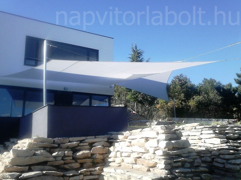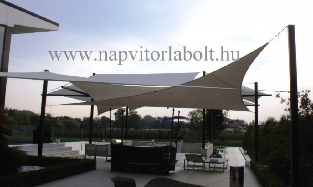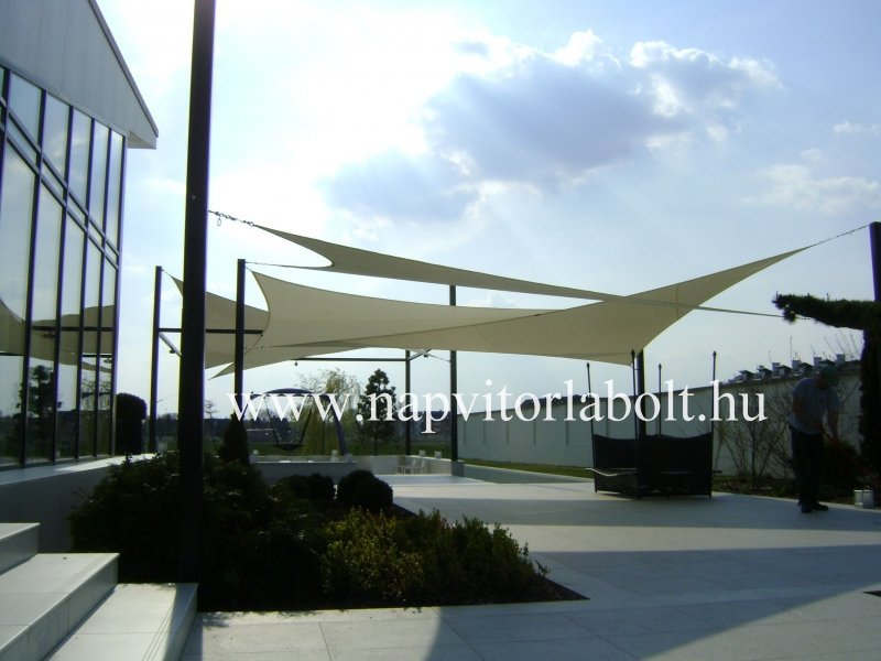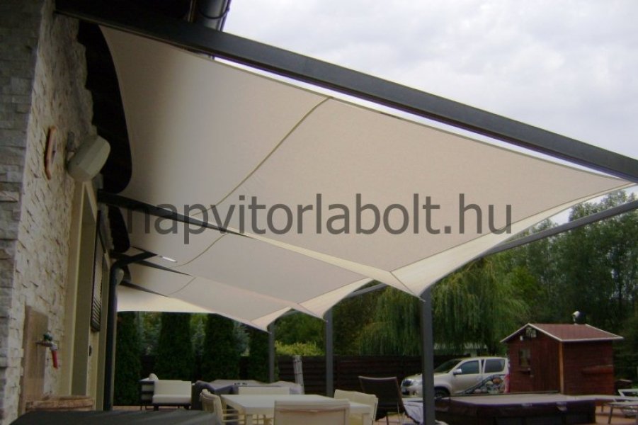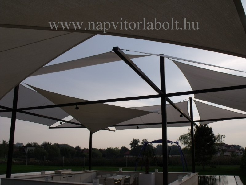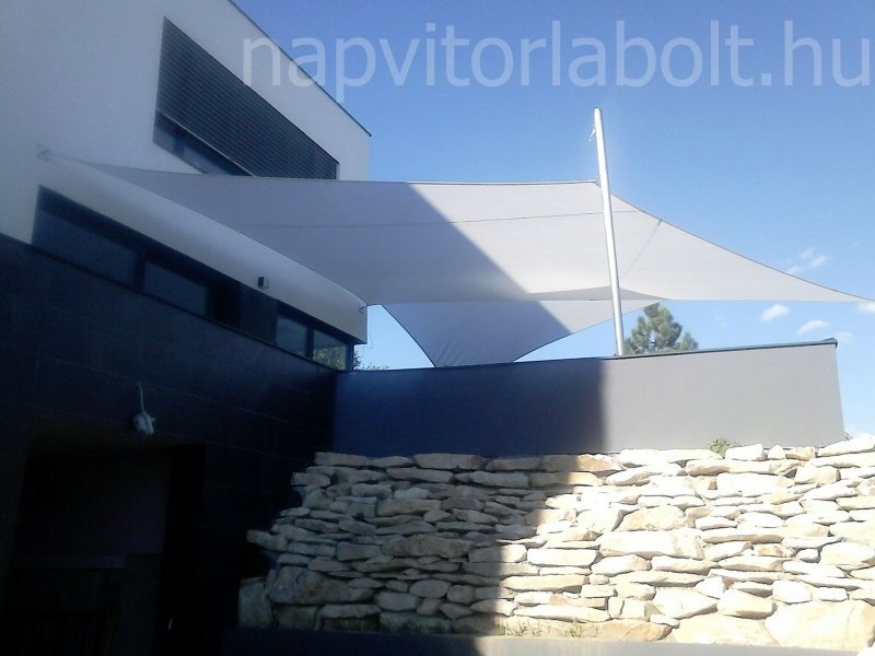 Ein Sonnensegel aus einer Kombination von zwei Materialien, das unser eigenes Patent ist.