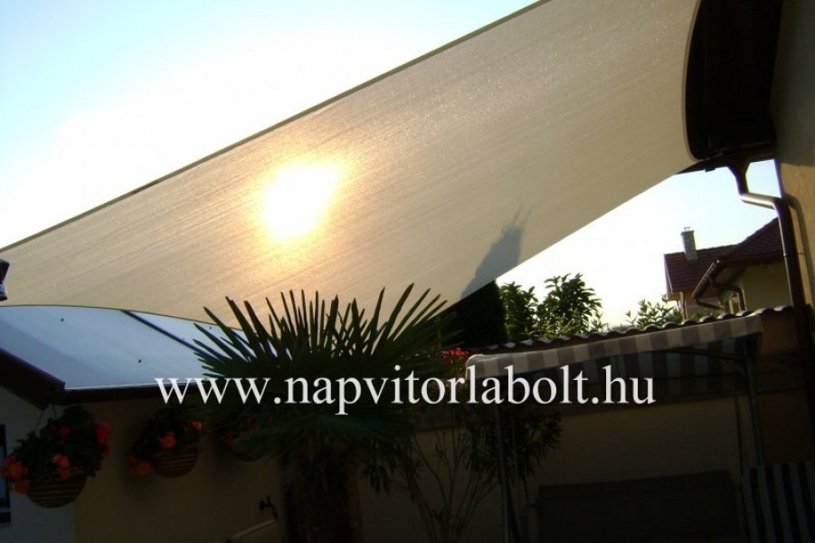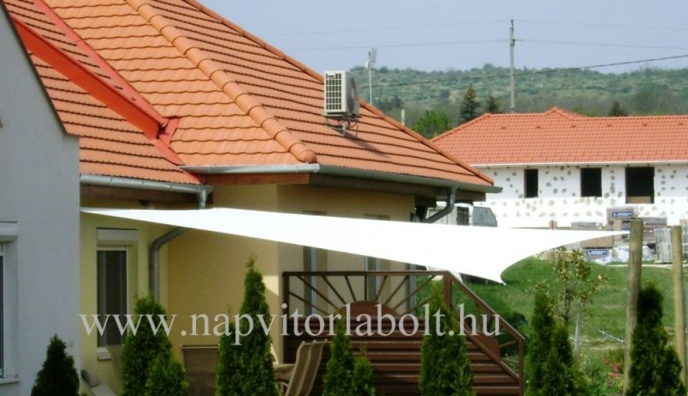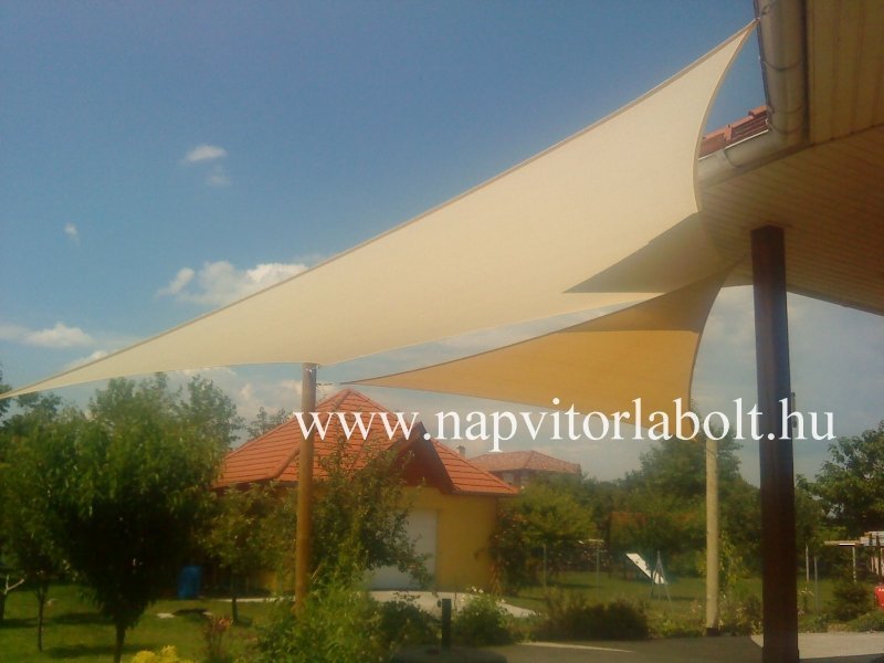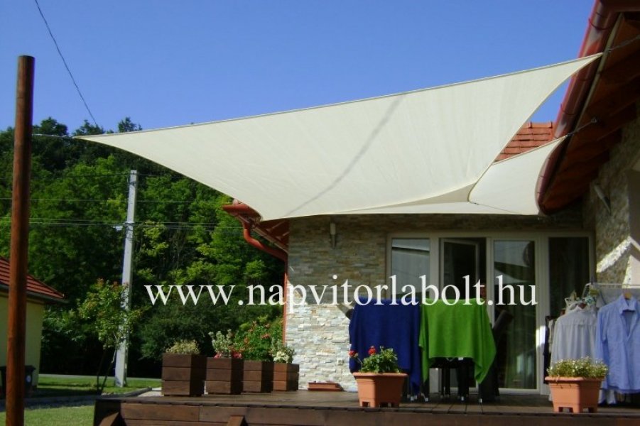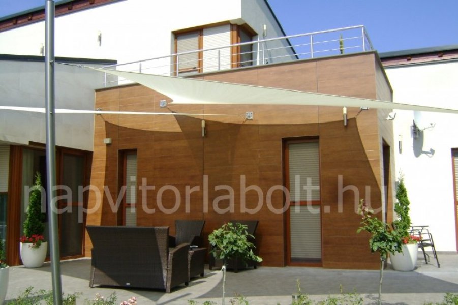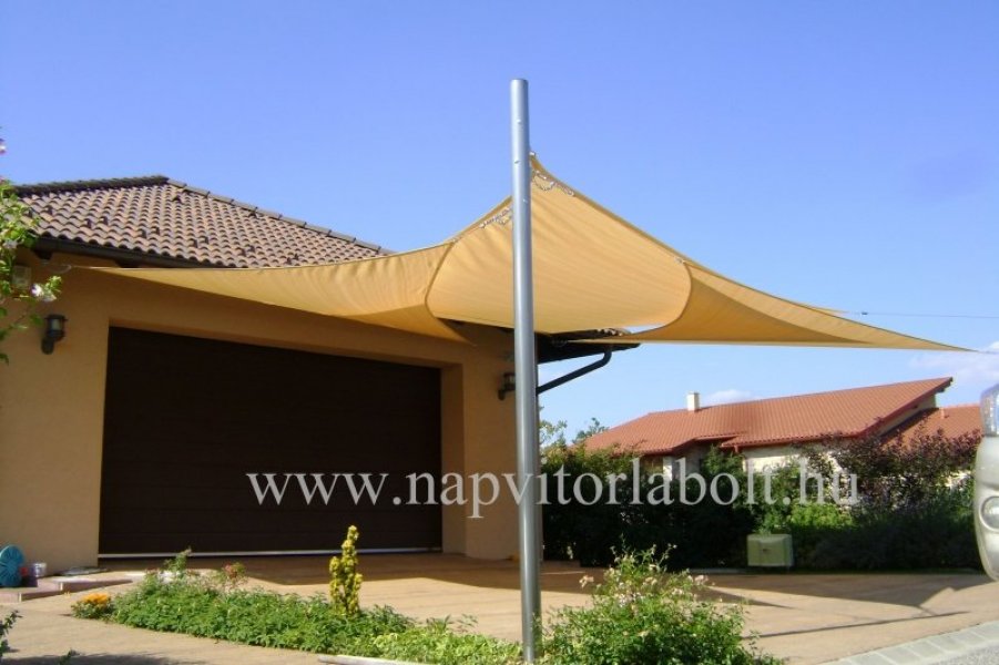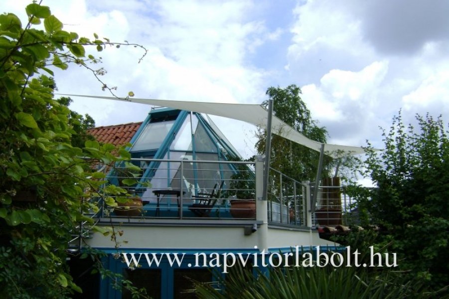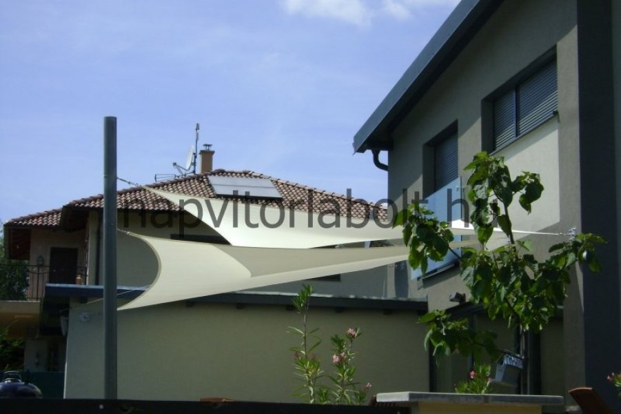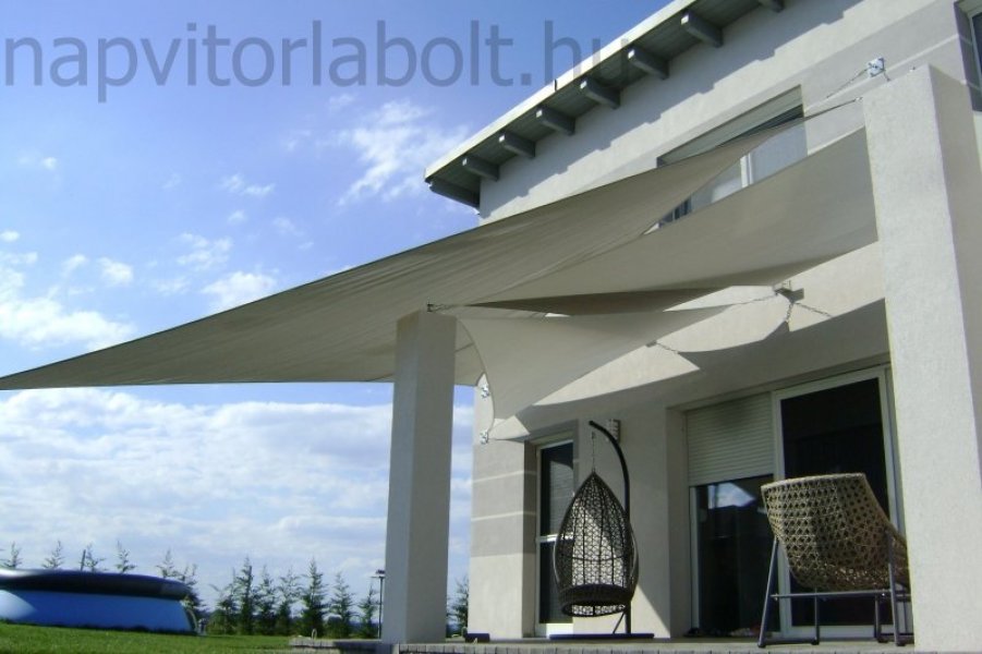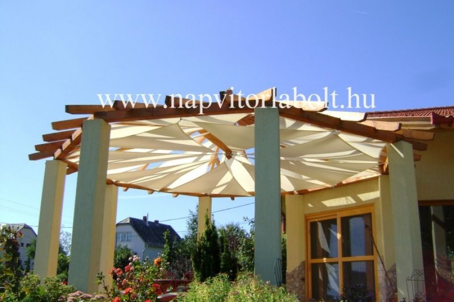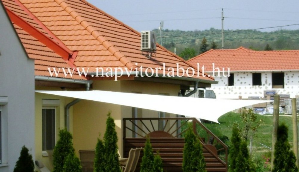 Ein Sonnensegel aus einer Kombination von zwei Materialien, das unser eigenes Patent ist.