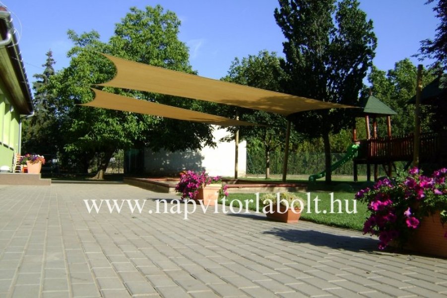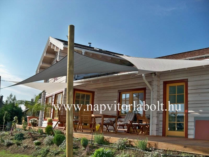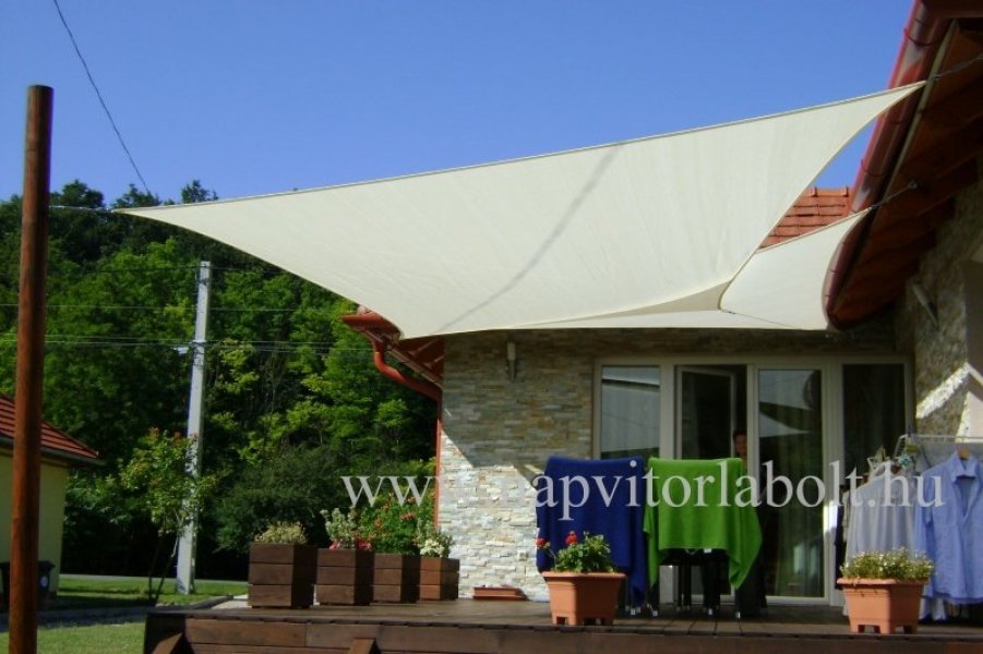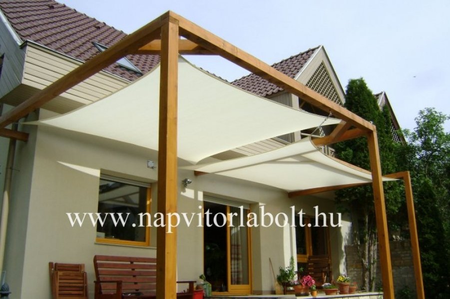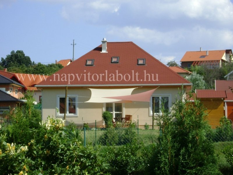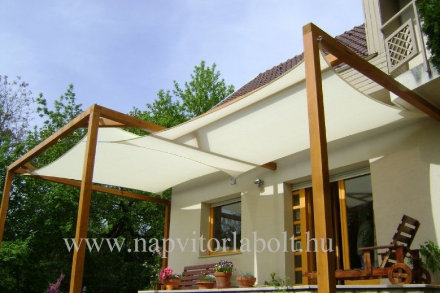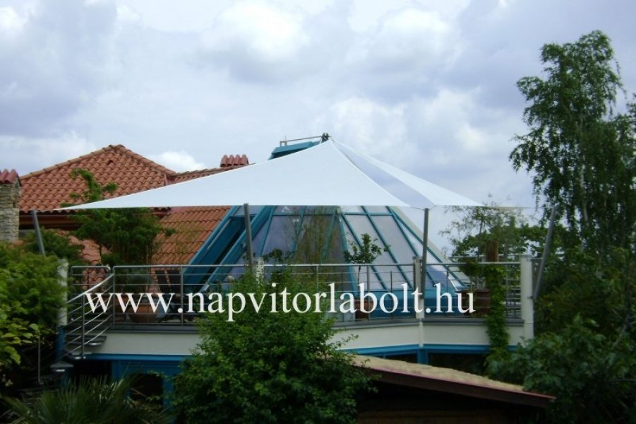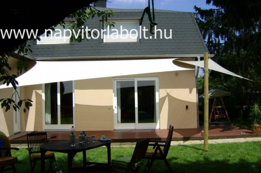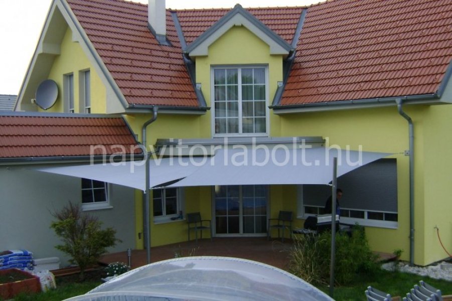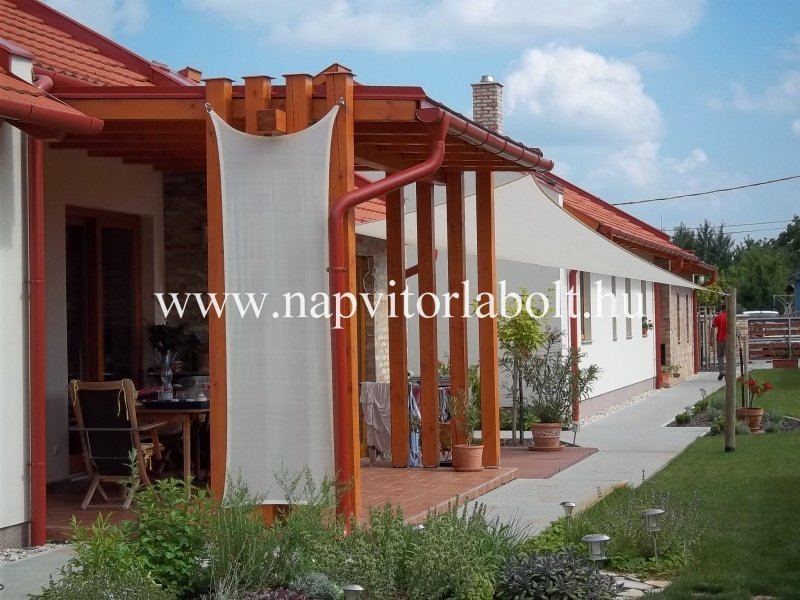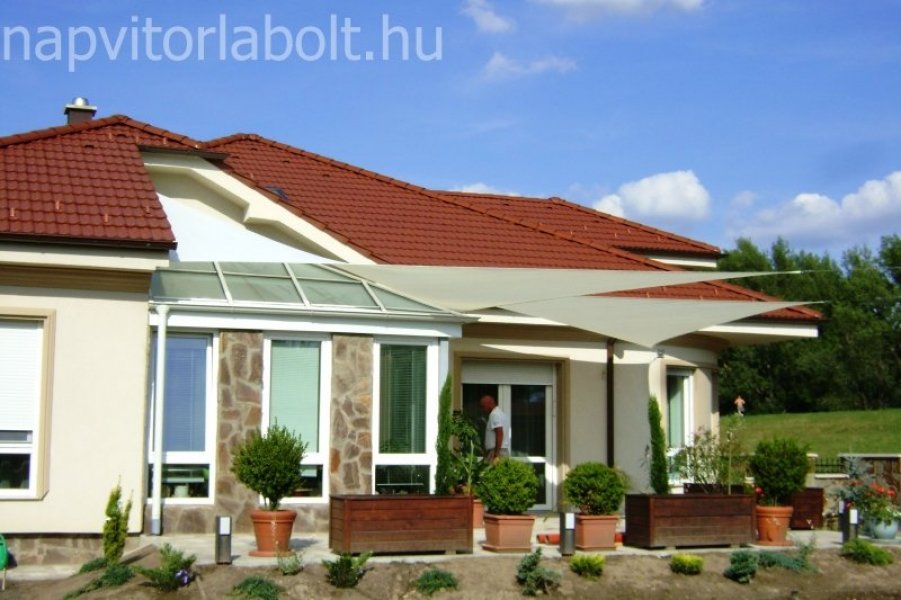Ein Sonnensegel aus einer Kombination von zwei Materialien, das unser eigenes Patent ist.