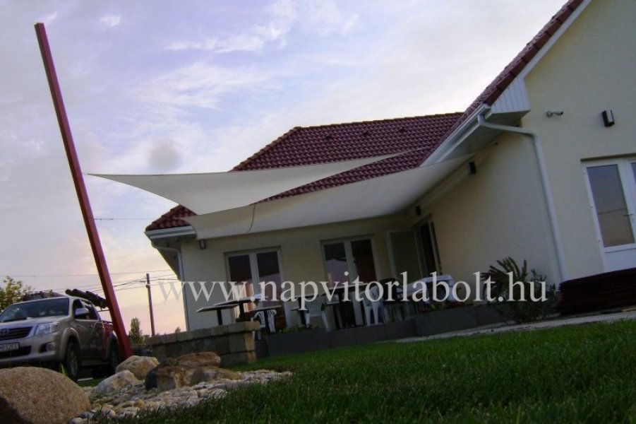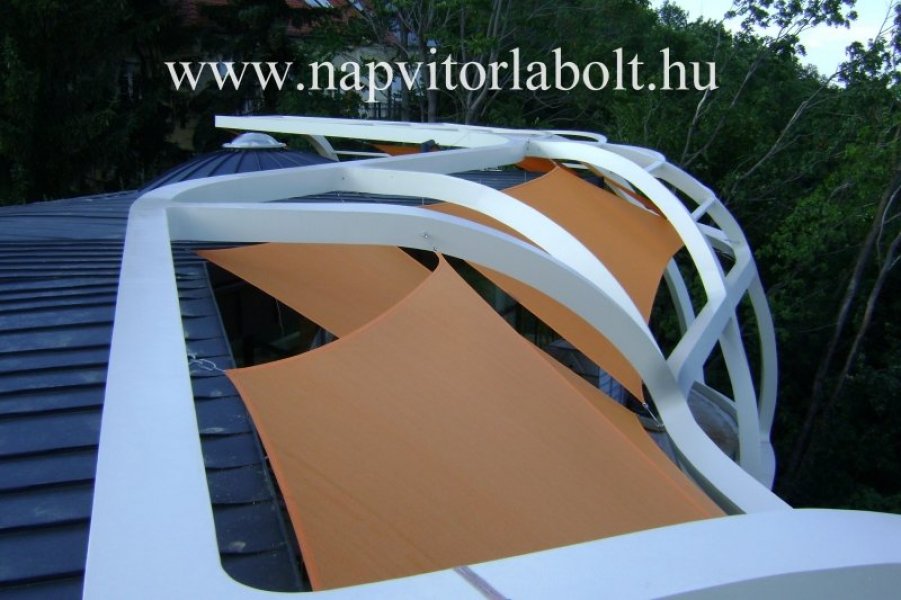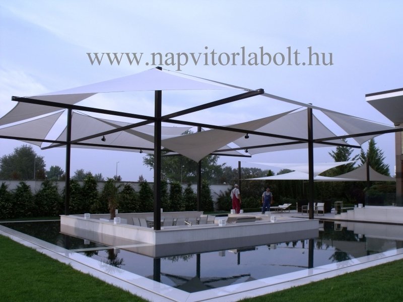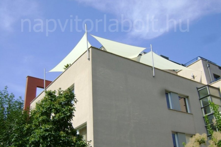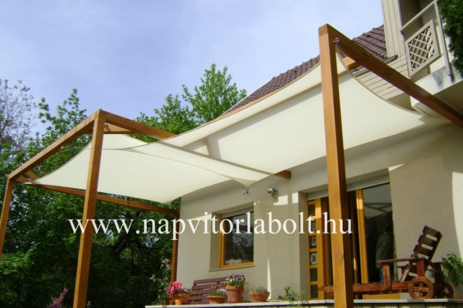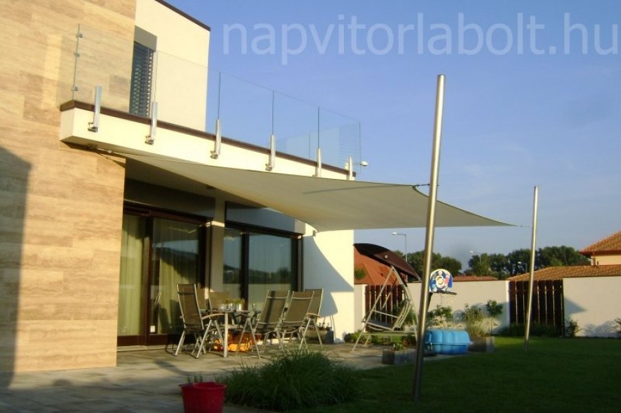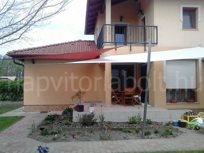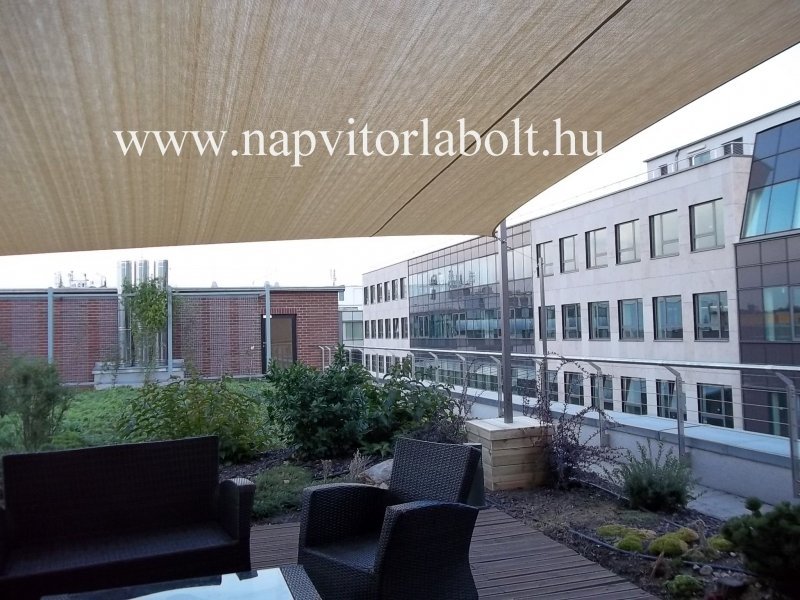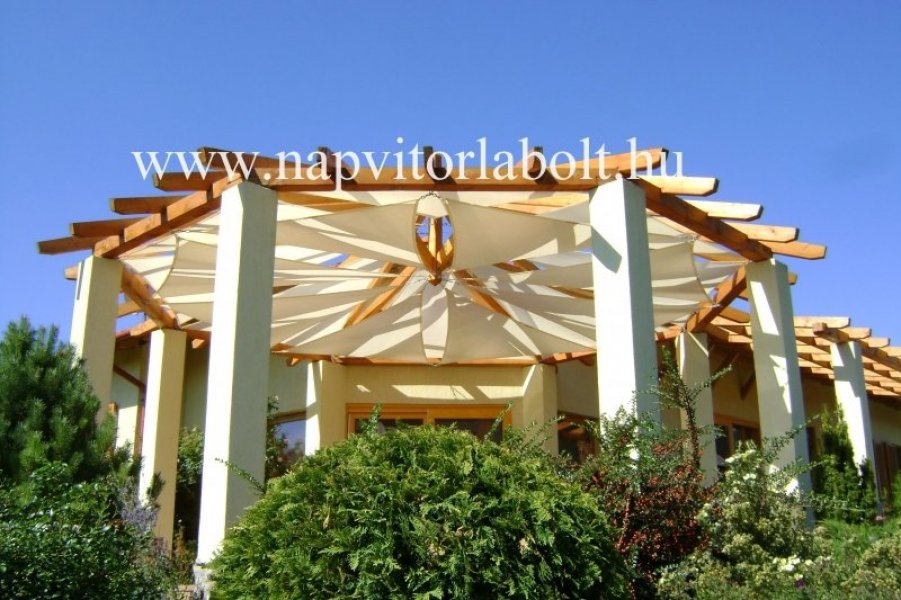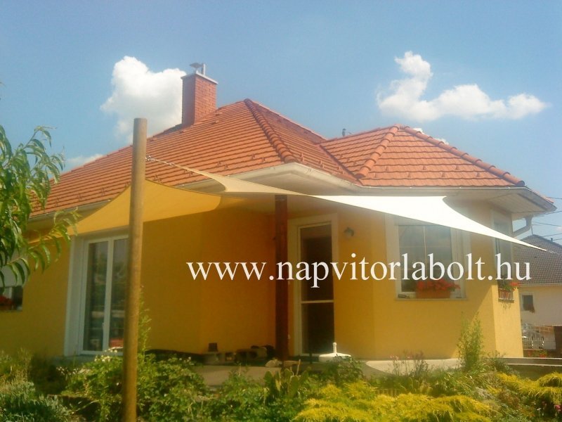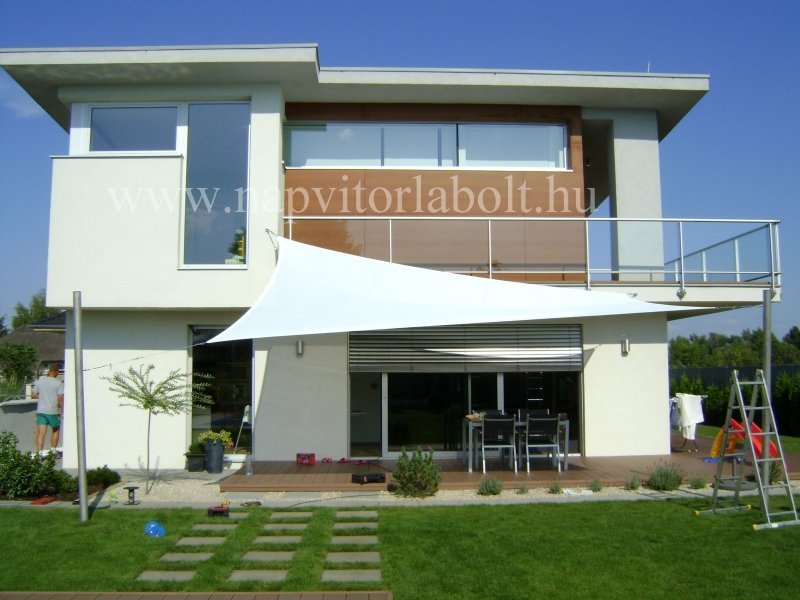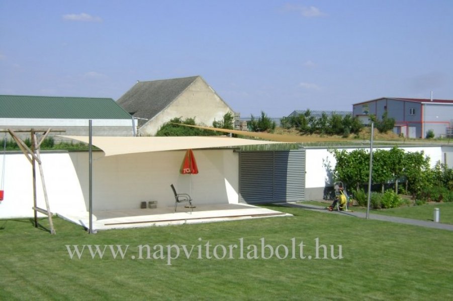 Ein Sonnensegel aus einer Kombination von zwei Materialien, das unser eigenes Patent ist.