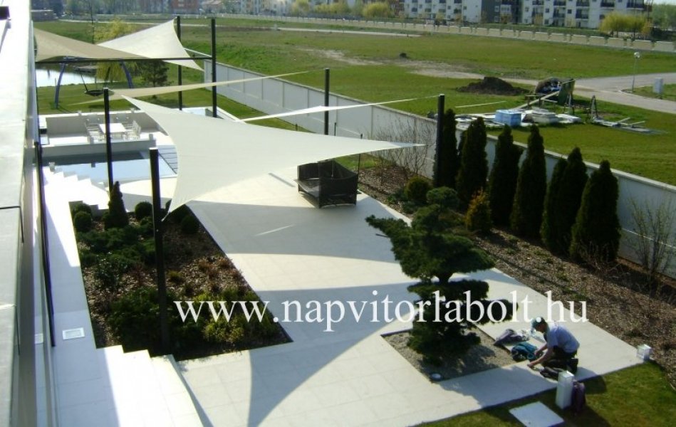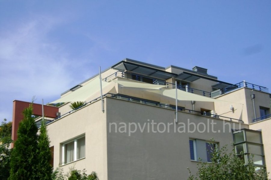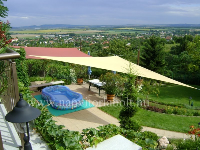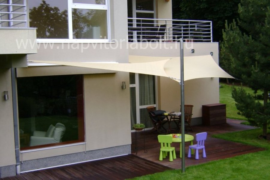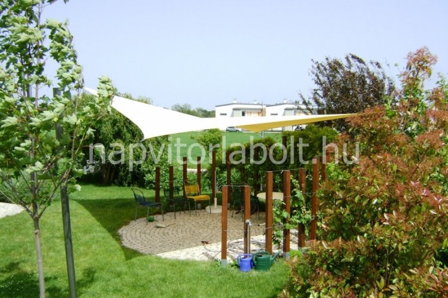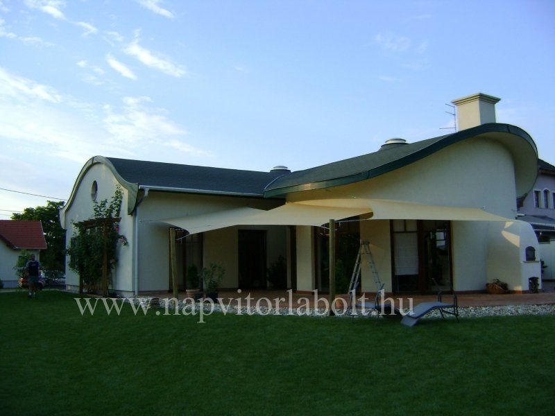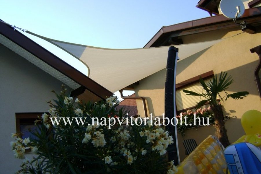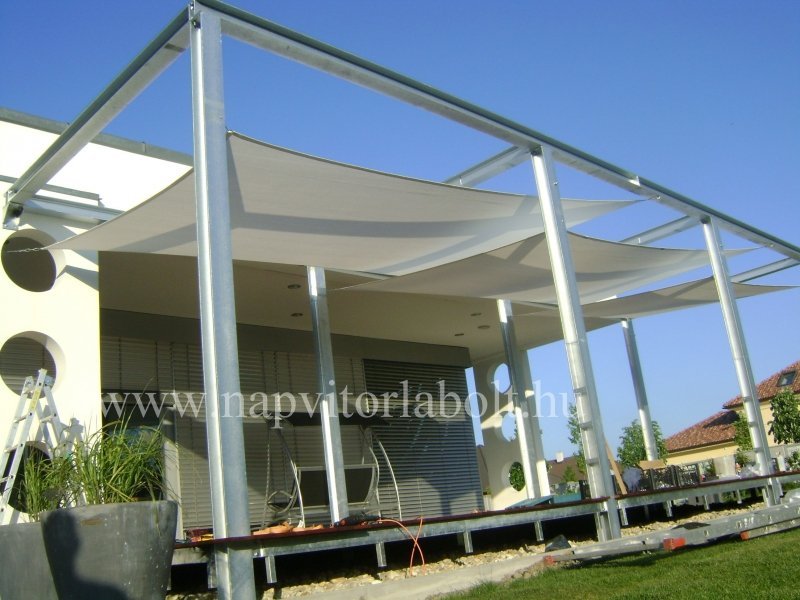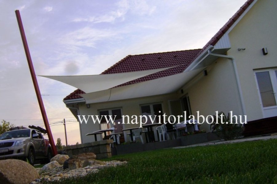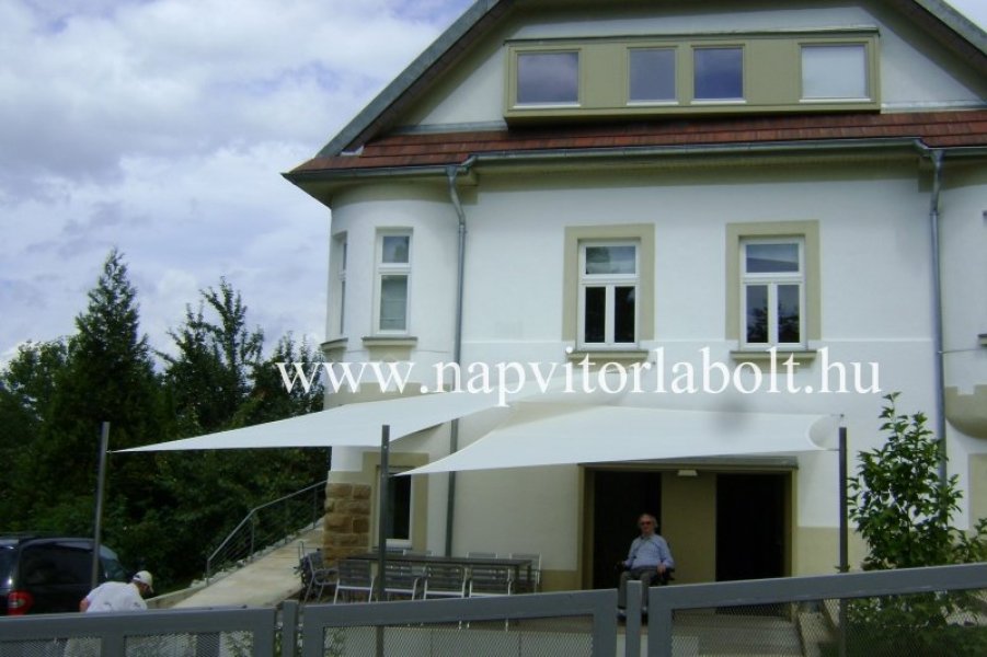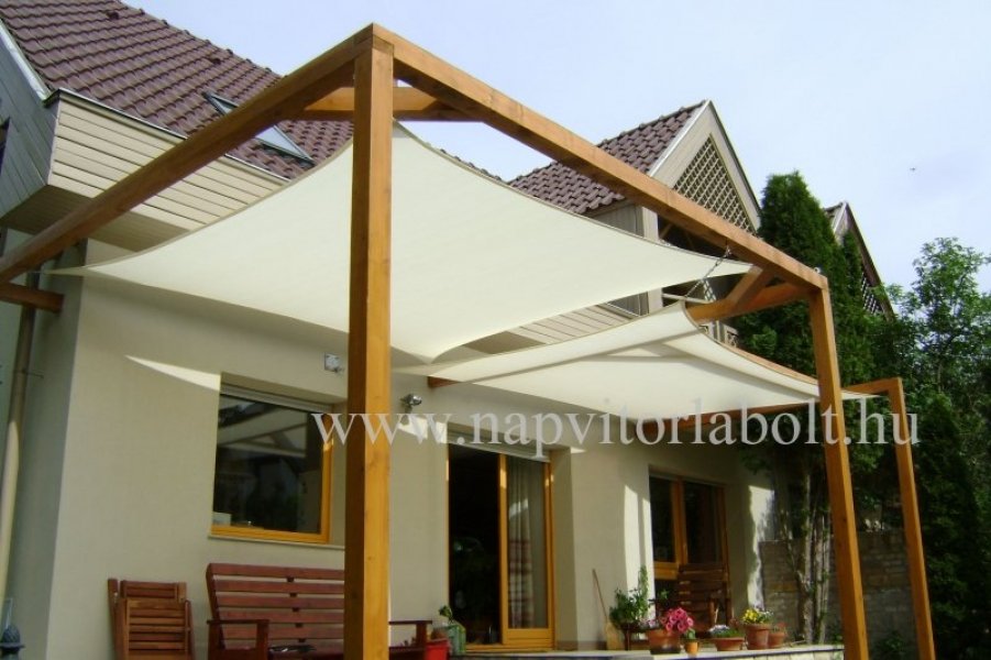 Ein Sonnensegel aus einer Kombination von zwei Materialien, das unser eigenes Patent ist.
