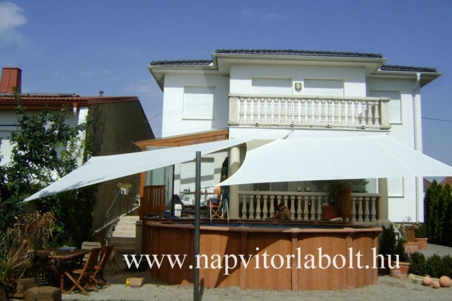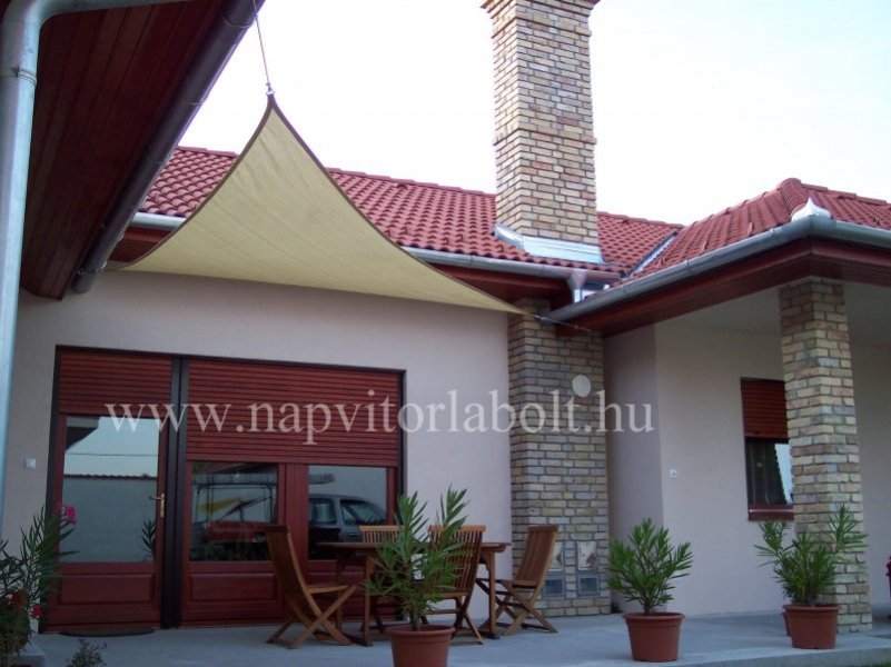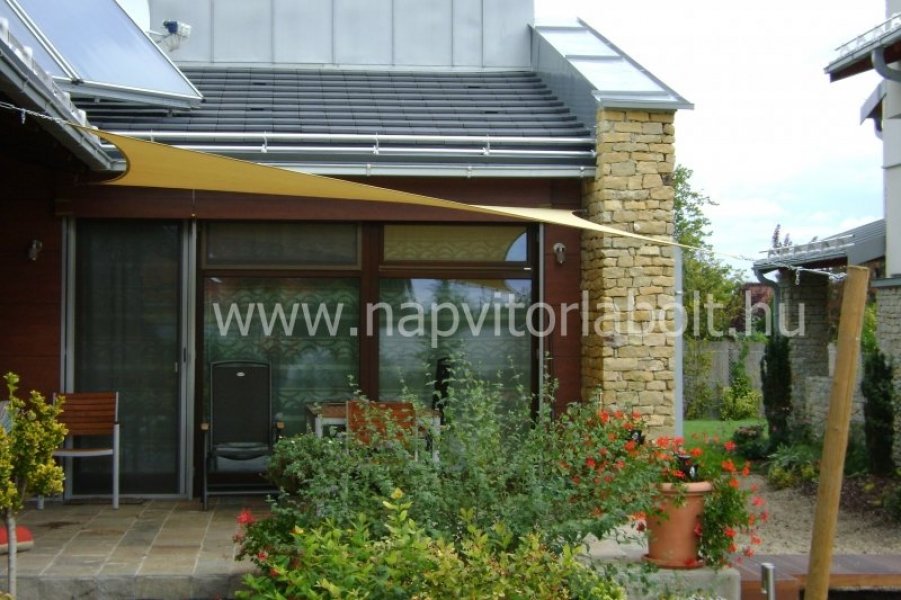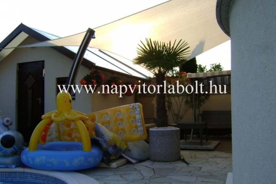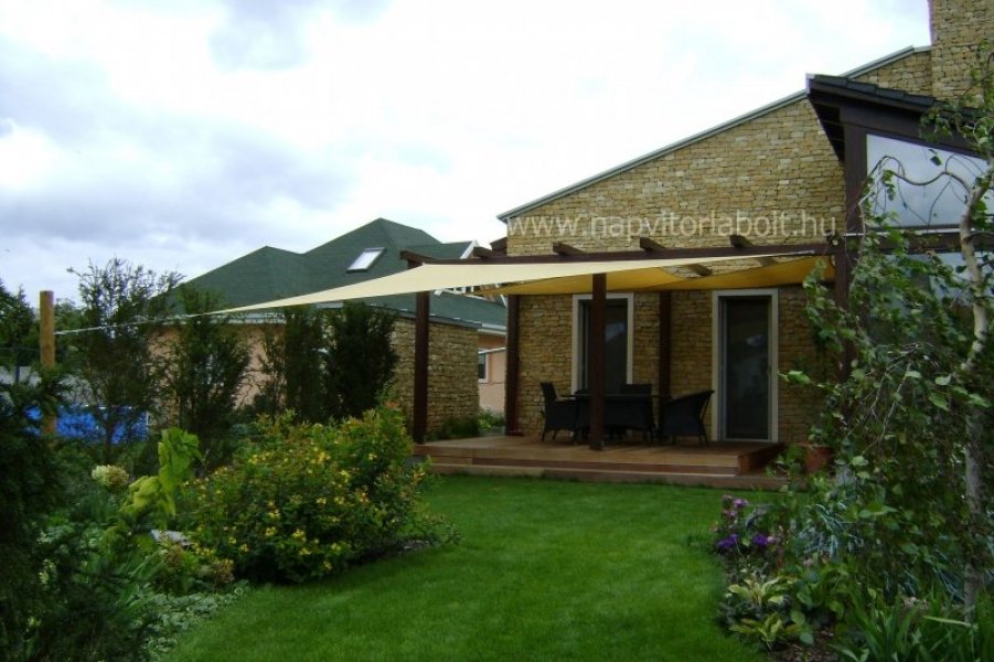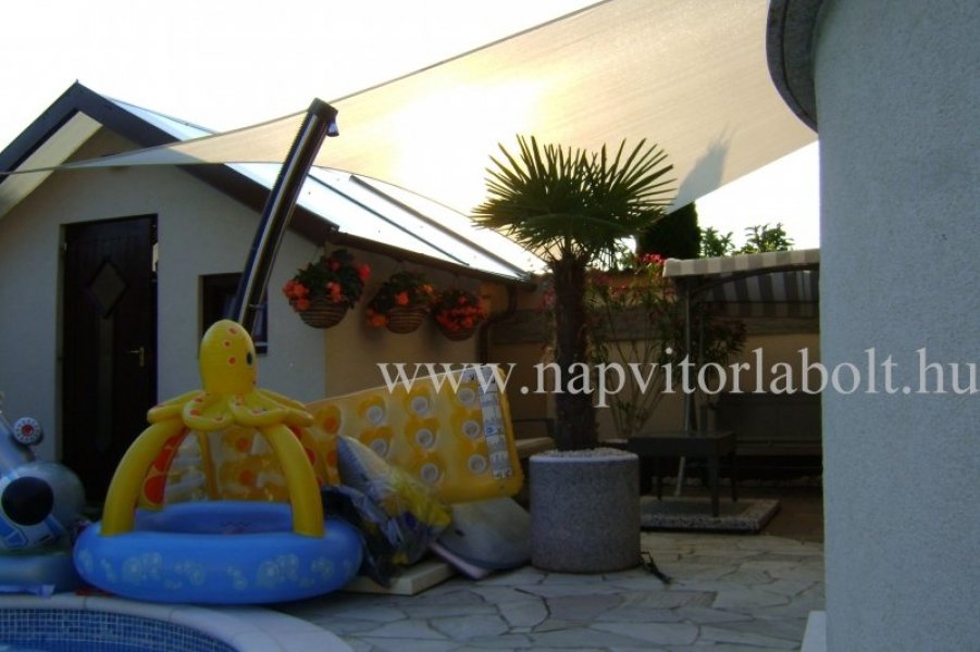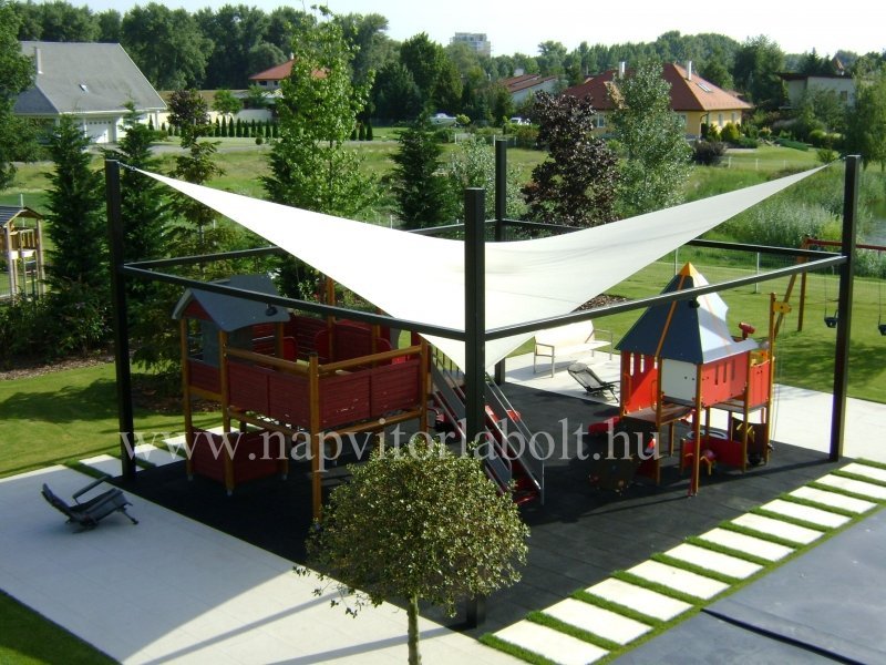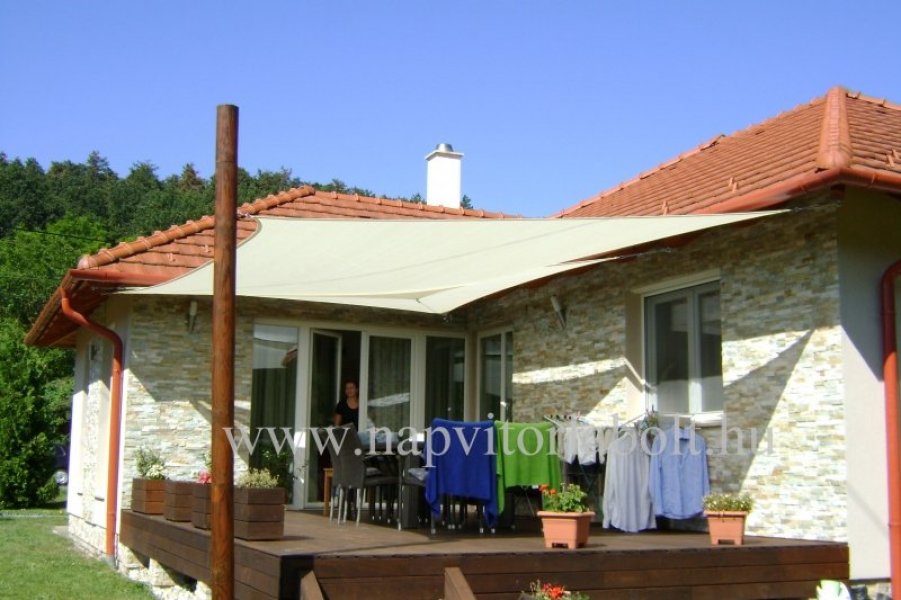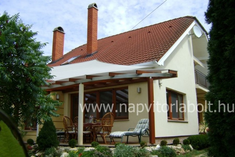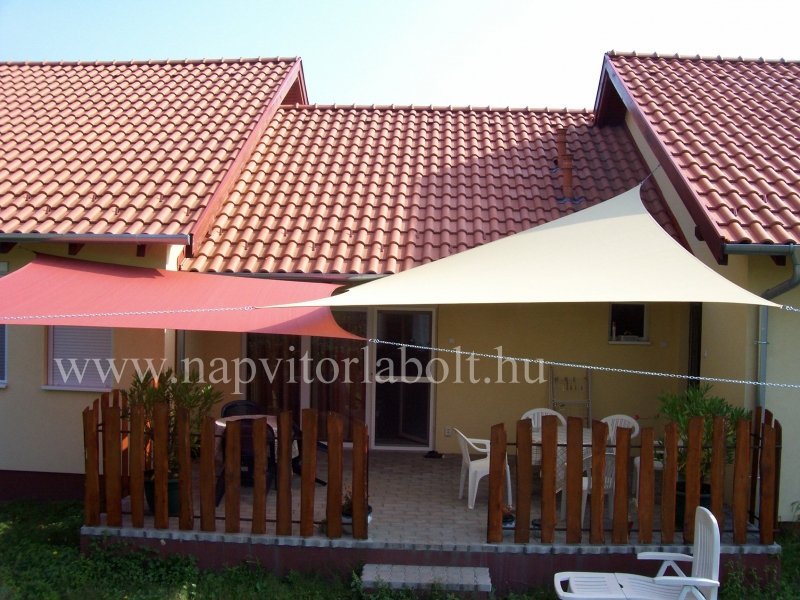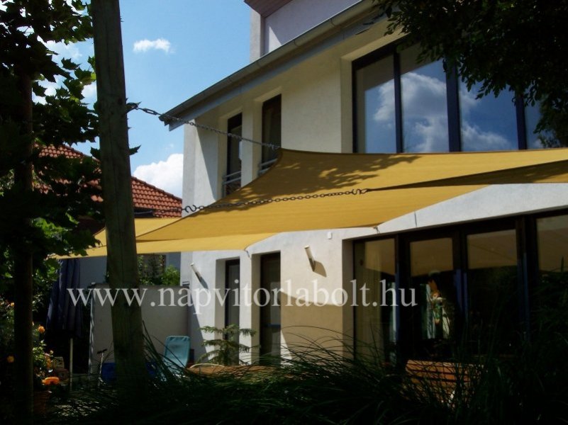 Ein Sonnensegel aus einer Kombination von zwei Materialien, das unser eigenes Patent ist.