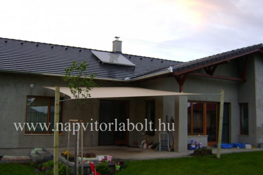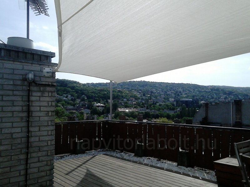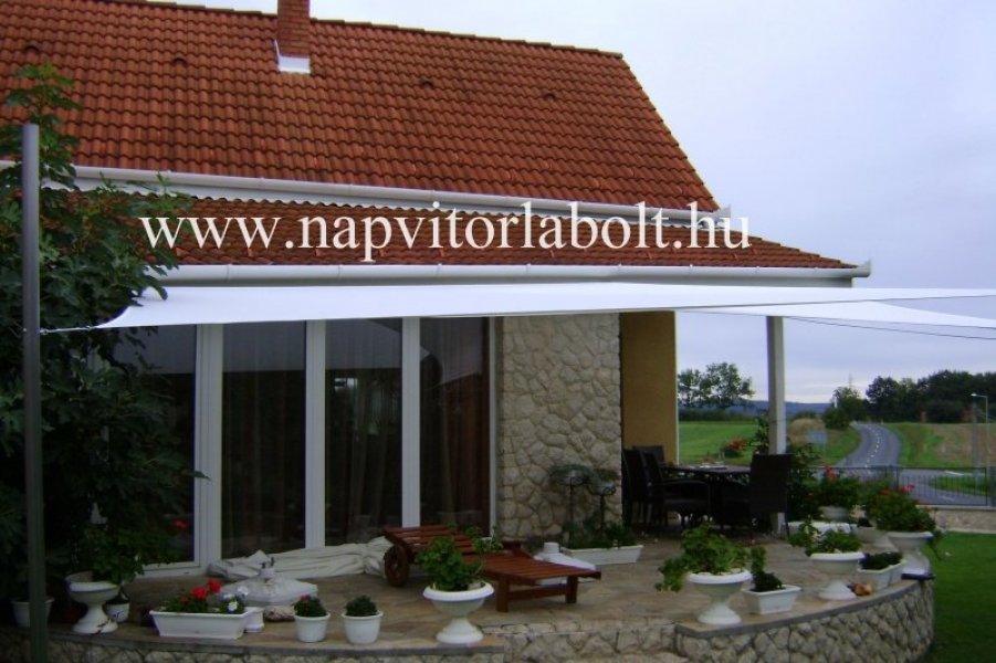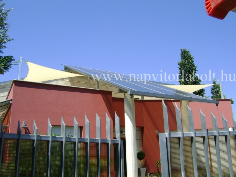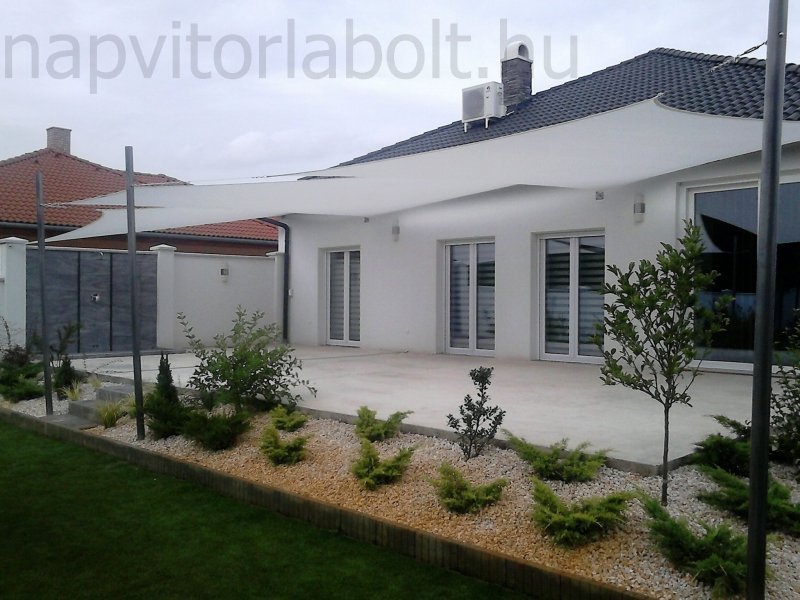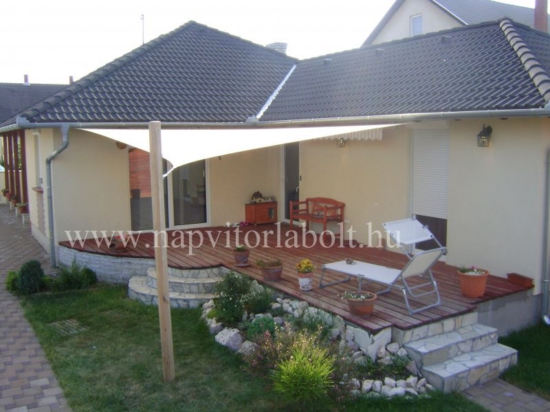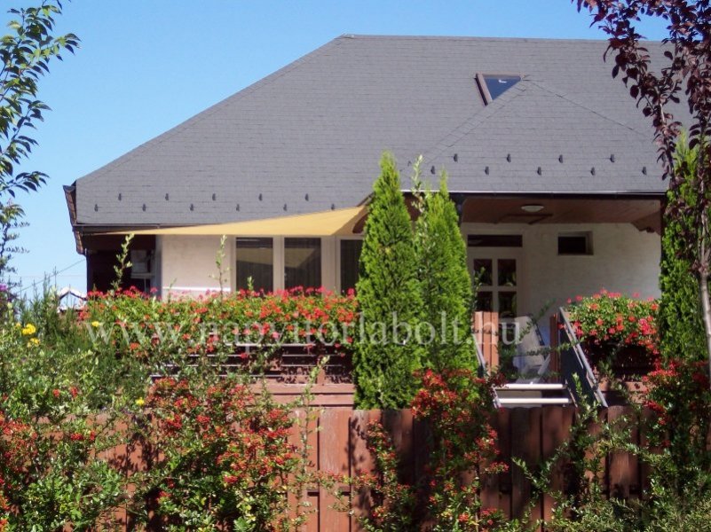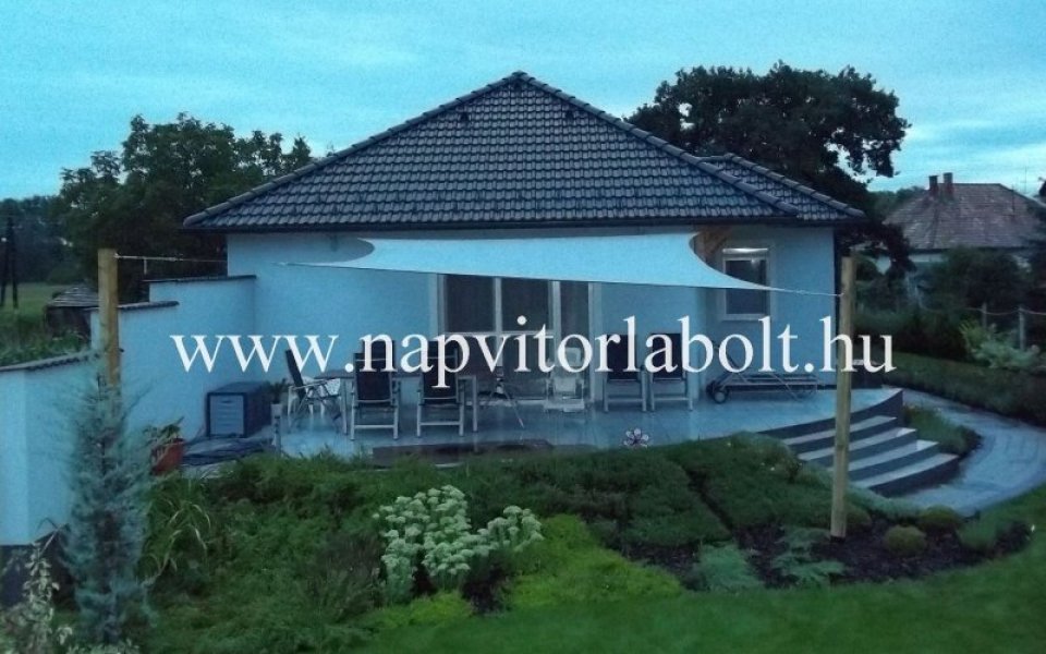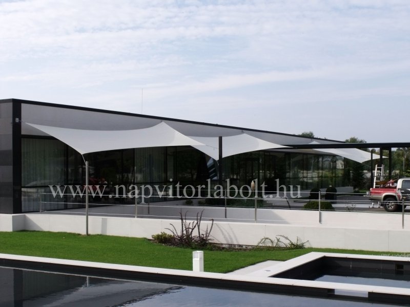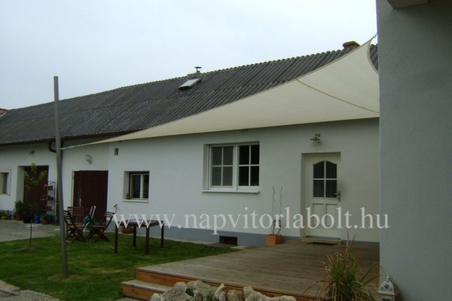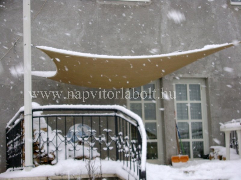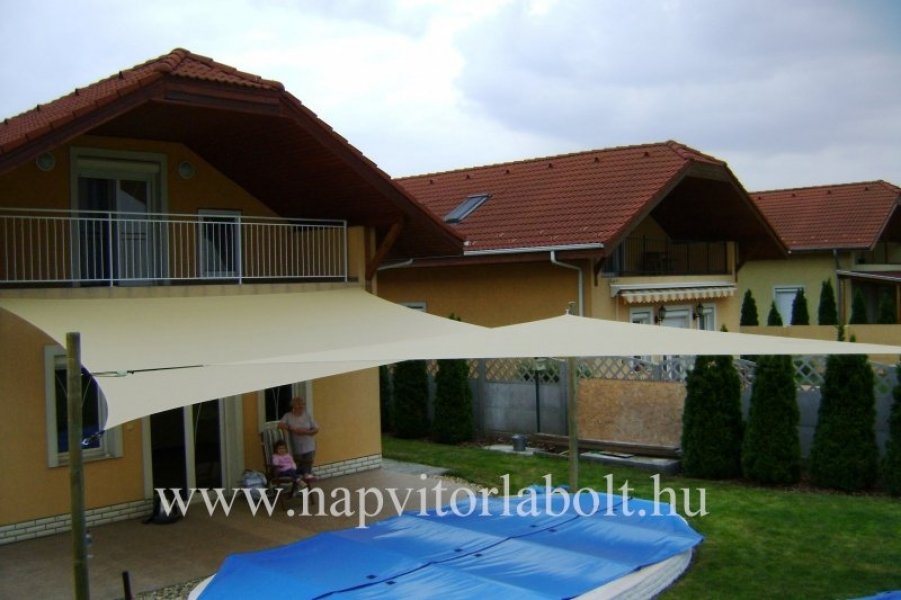 Ein Sonnensegel aus einer Kombination von zwei Materialien, das unser eigenes Patent ist.