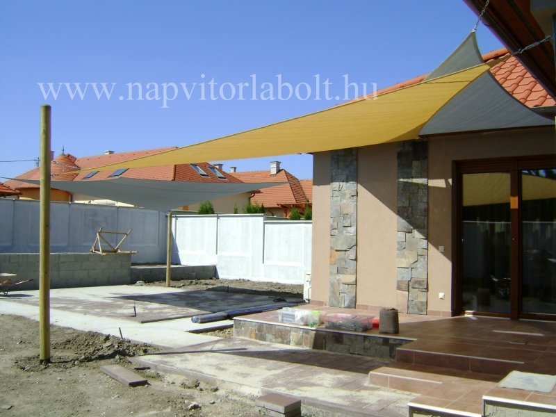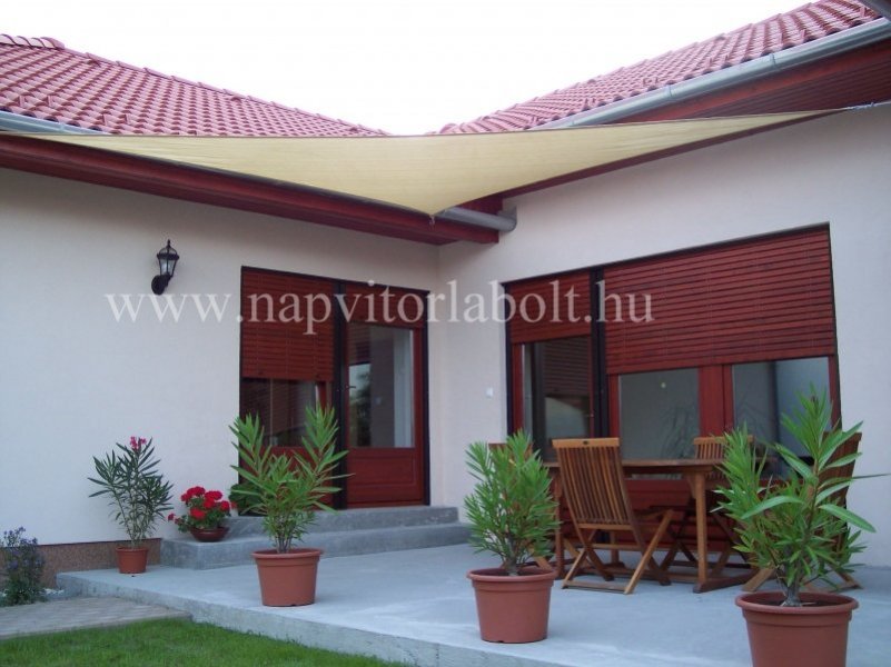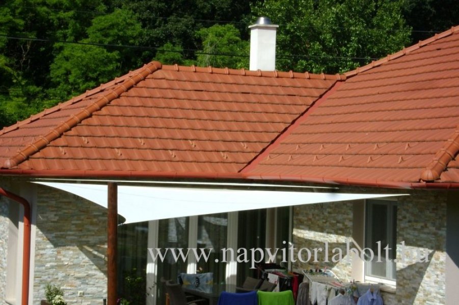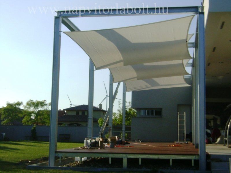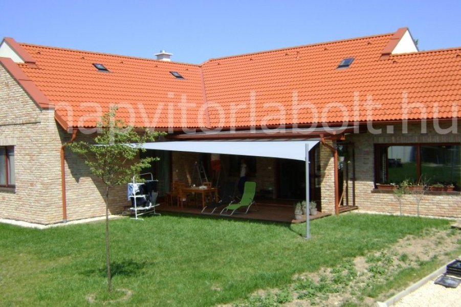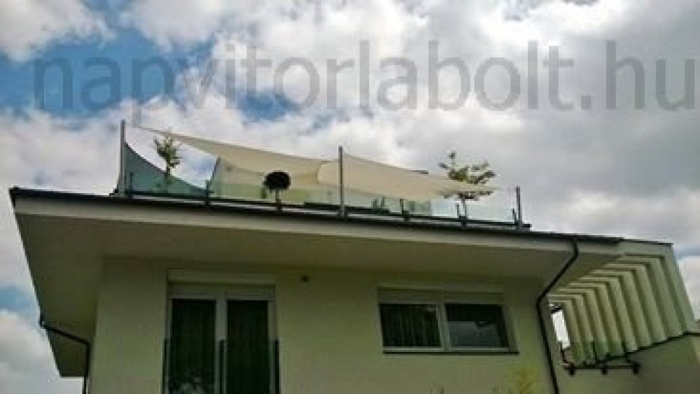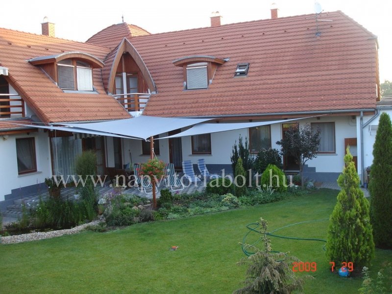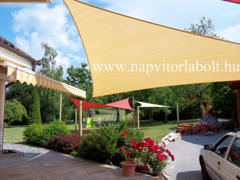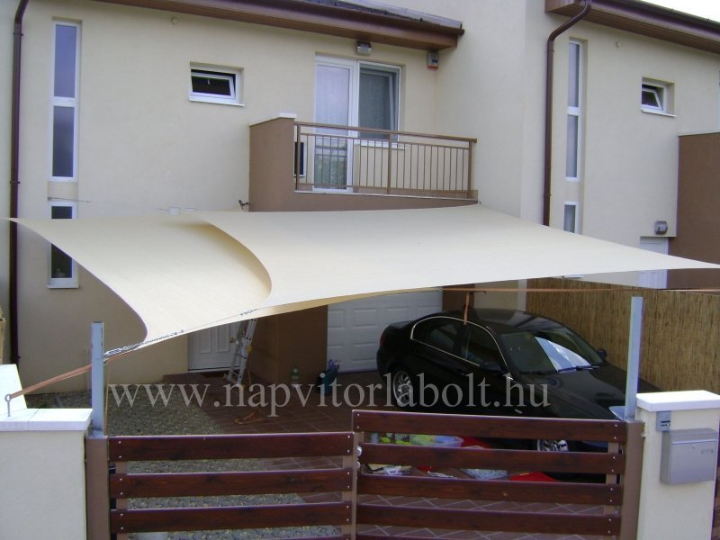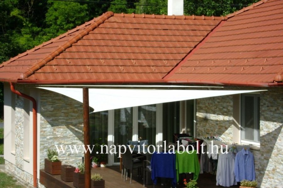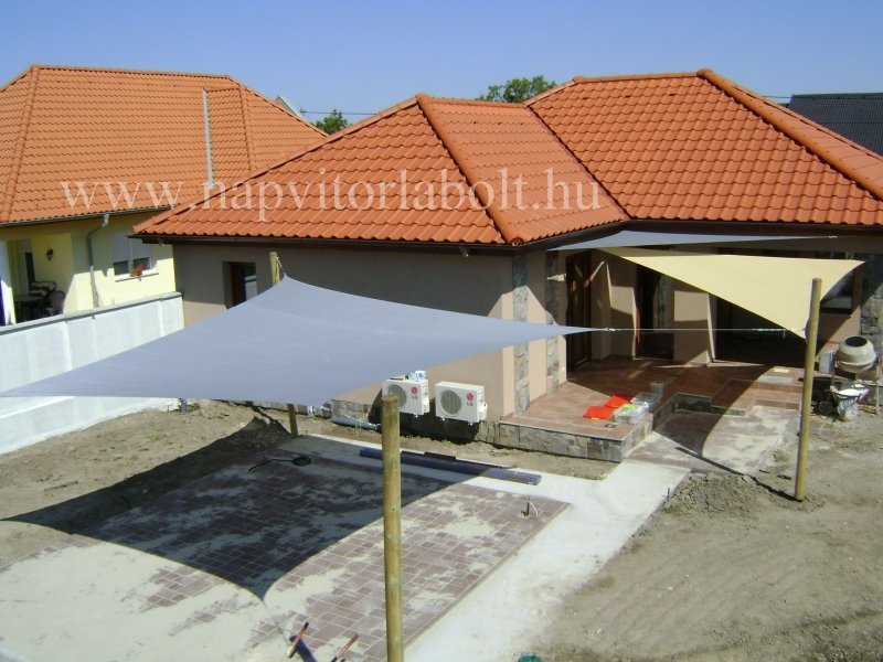 Ein Sonnensegel aus einer Kombination von zwei Materialien, das unser eigenes Patent ist.