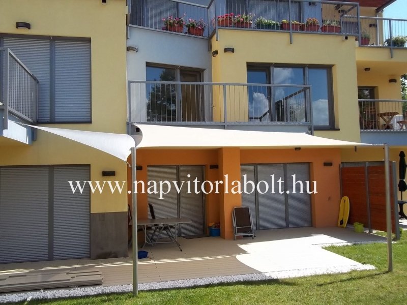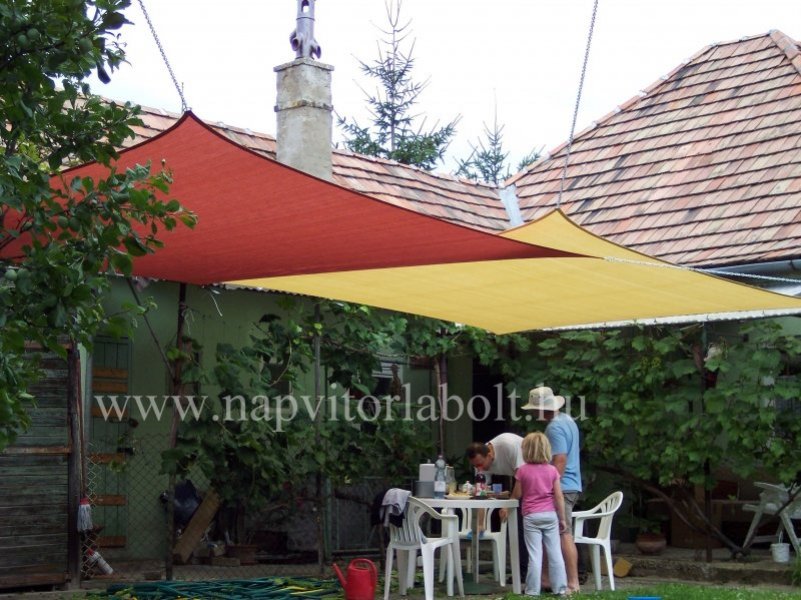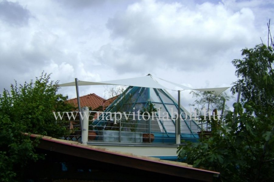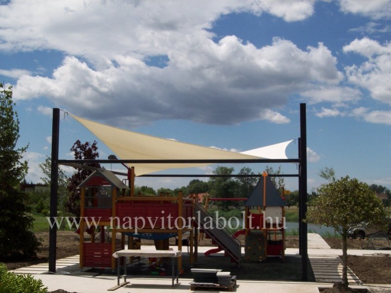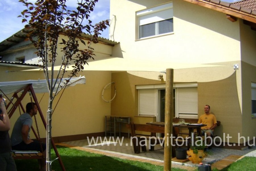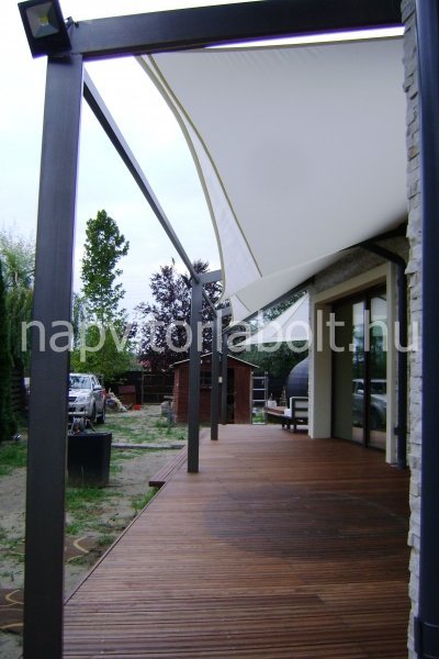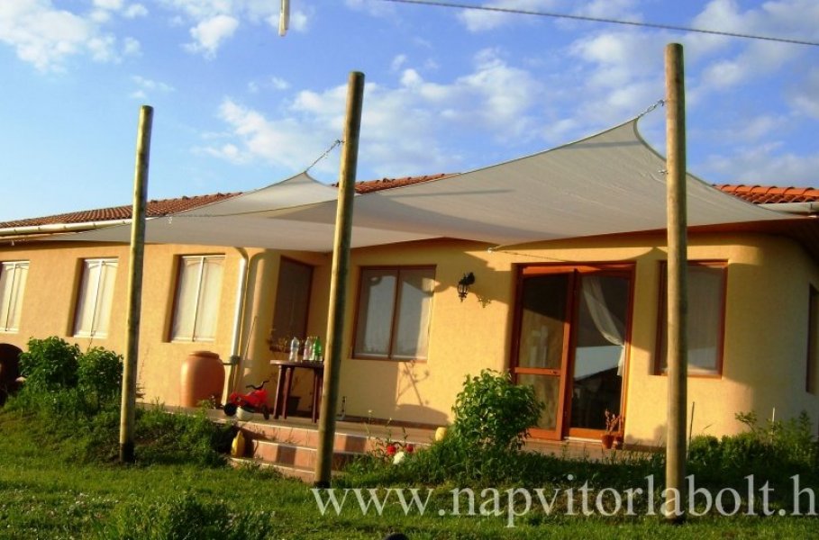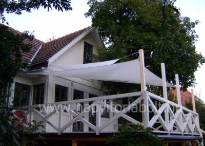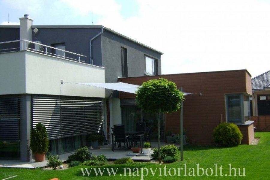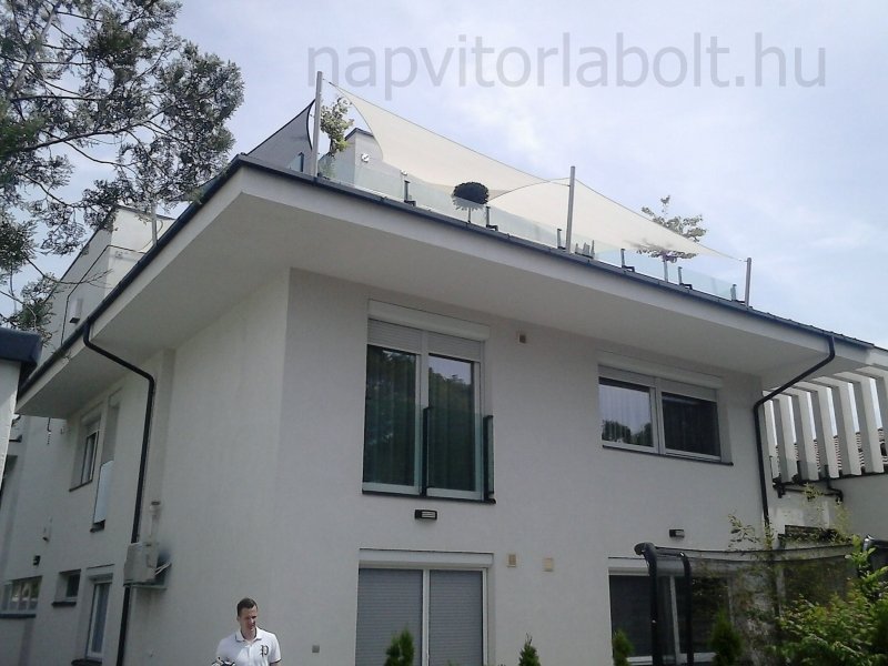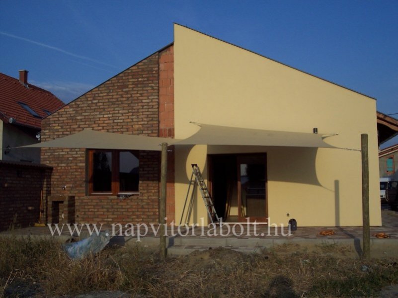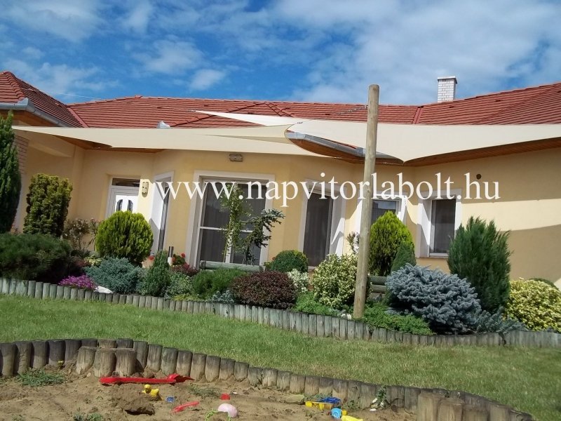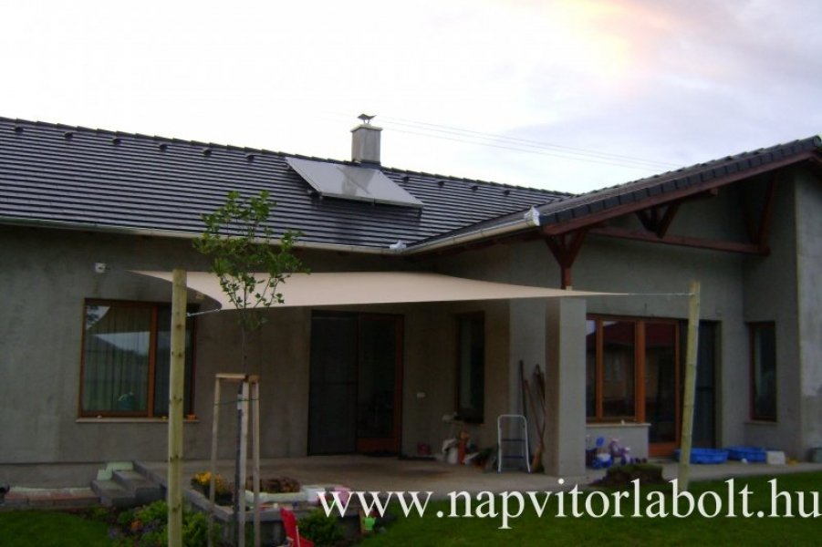 Ein Sonnensegel aus einer Kombination von zwei Materialien, das unser eigenes Patent ist.