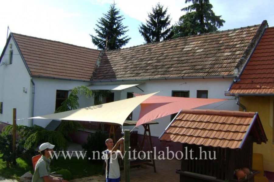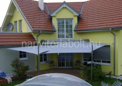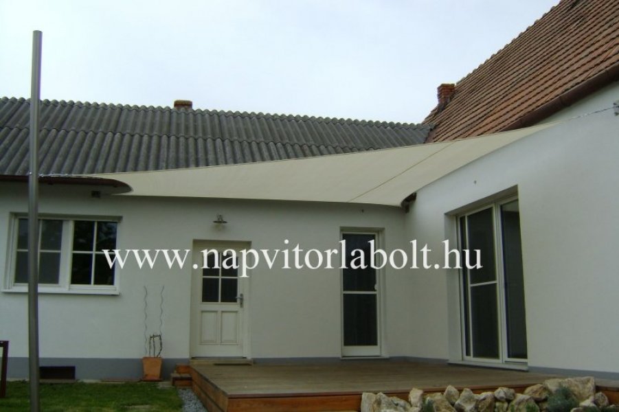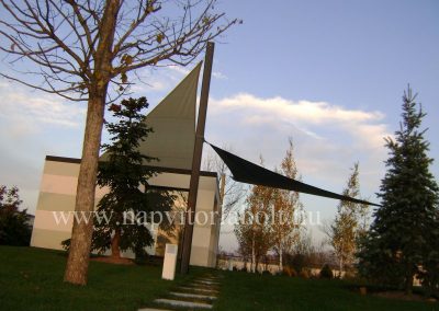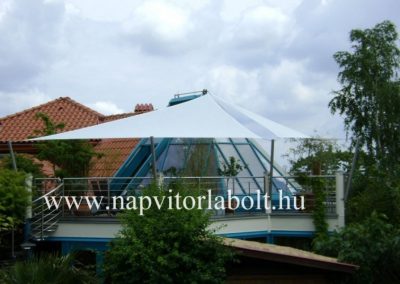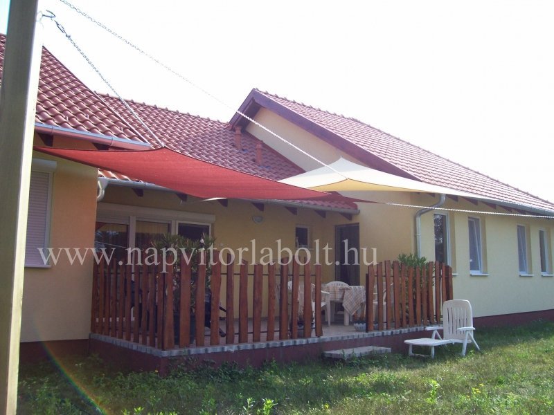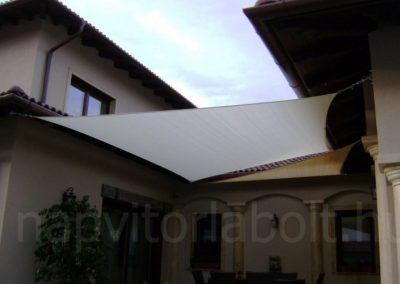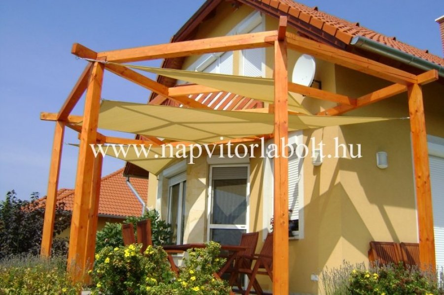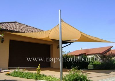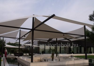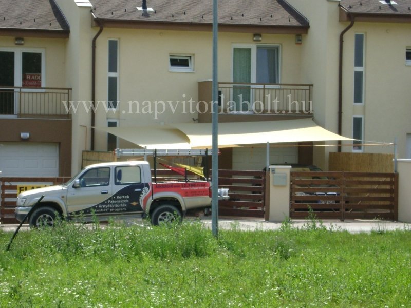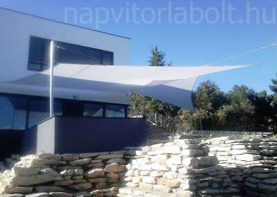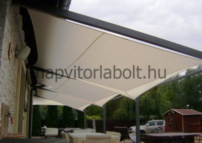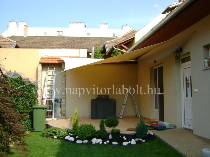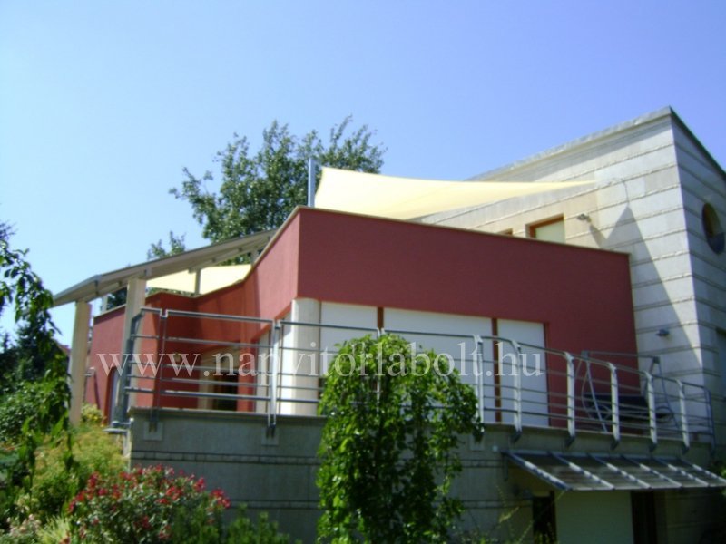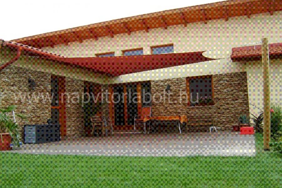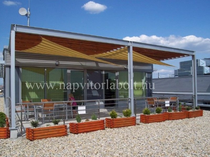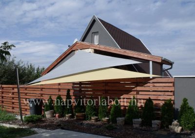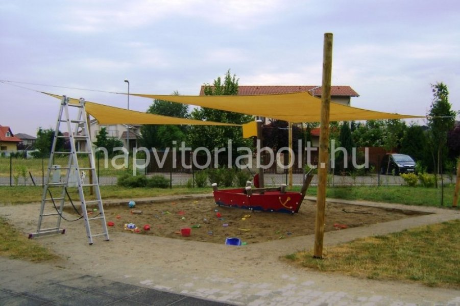 Ein Sonnensegel aus einer Kombination von zwei Materialien, das unser eigenes Patent ist.