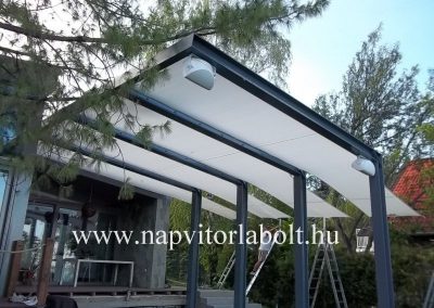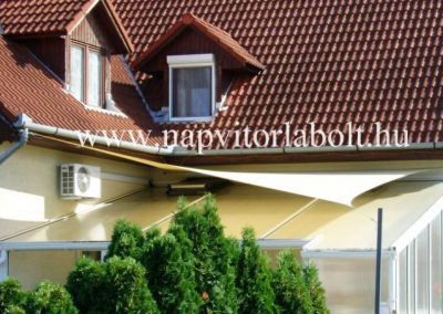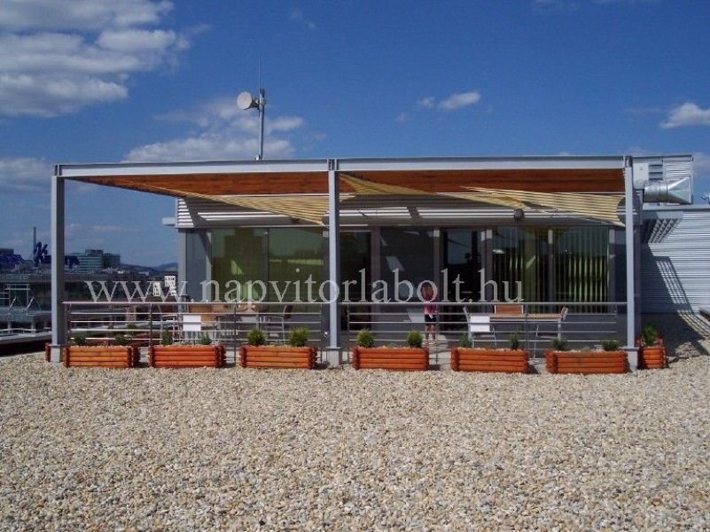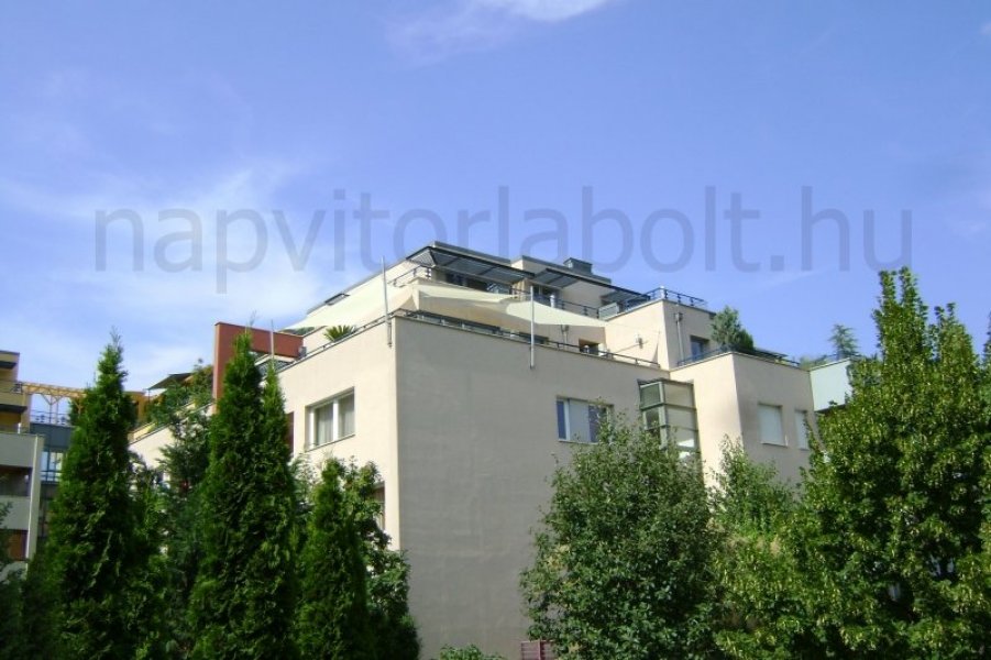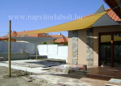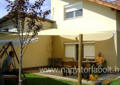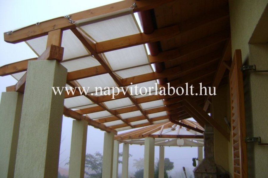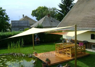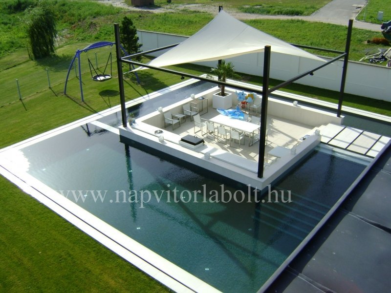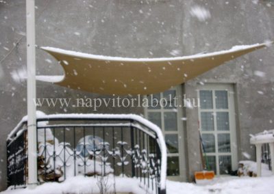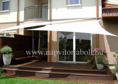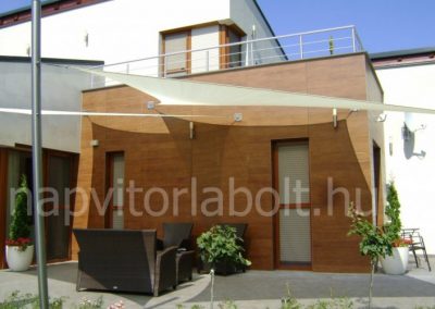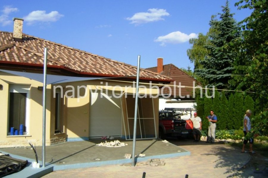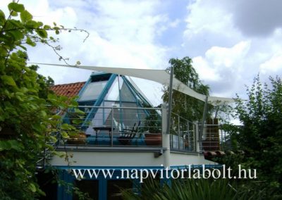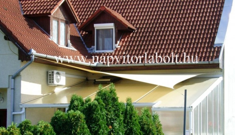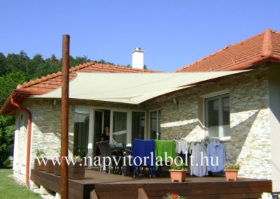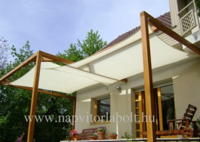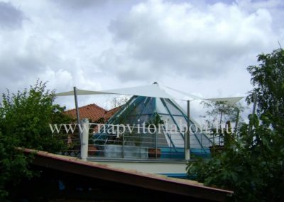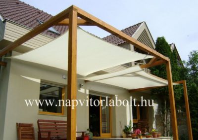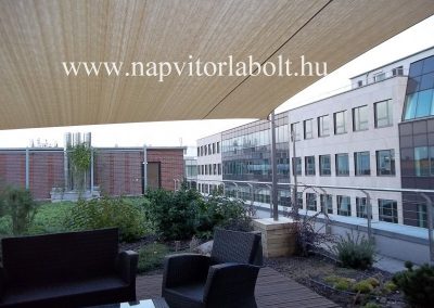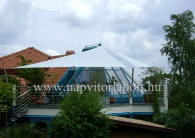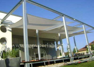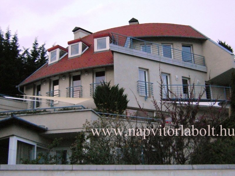 Ein Sonnensegel aus einer Kombination von zwei Materialien, das unser eigenes Patent ist.