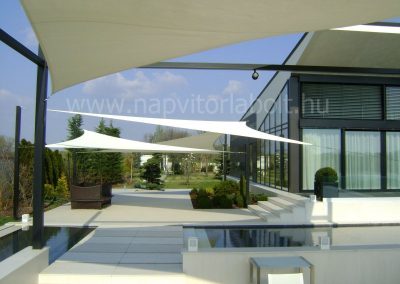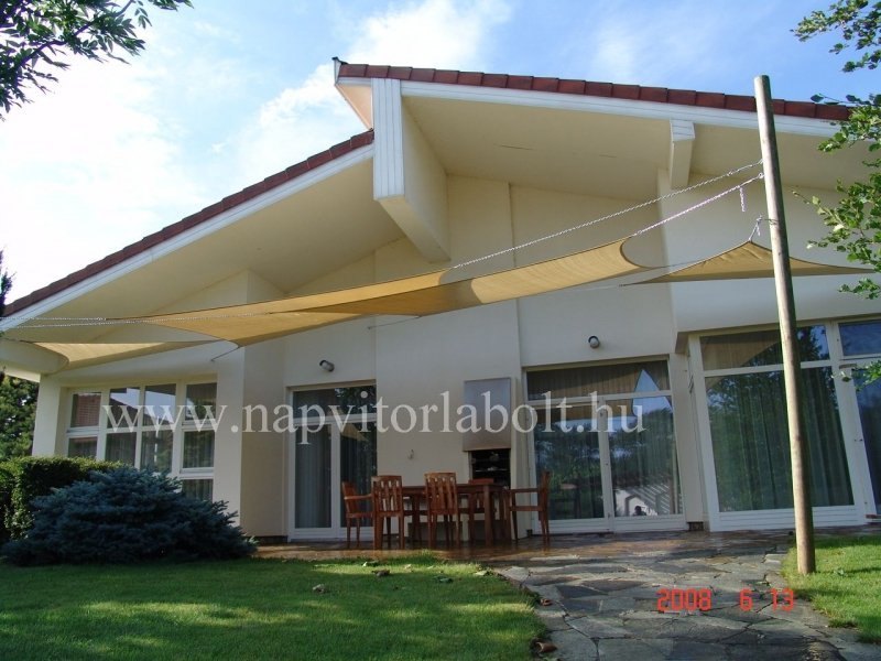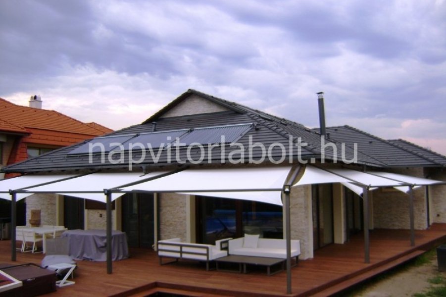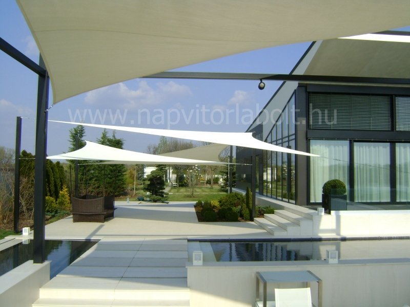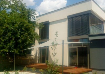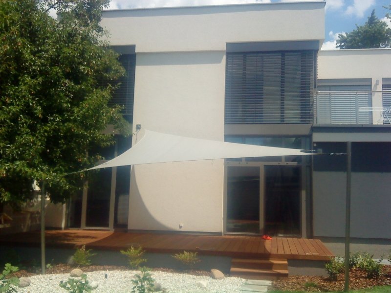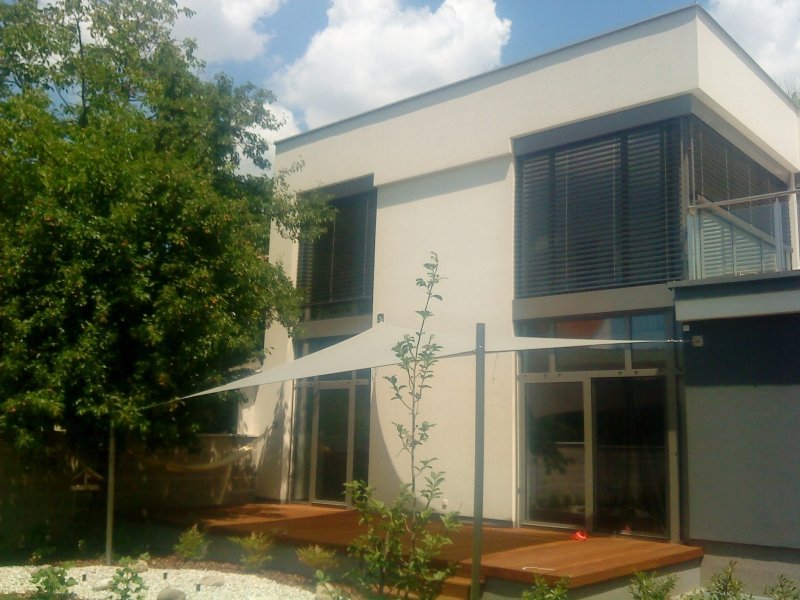 Unsere Familiensonnensegel bieten einen angenehmen schattigen Entspannungsbereich, verleihen dem Haus ein spektakuläres Aussehen und sind im Winter der wärmenden Sonne aus dem Weg.