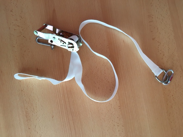 Gyorsan kezelhető, oldható-áthelyezhető-feszíthető kötőelem nagyobb vitorlákhoz.